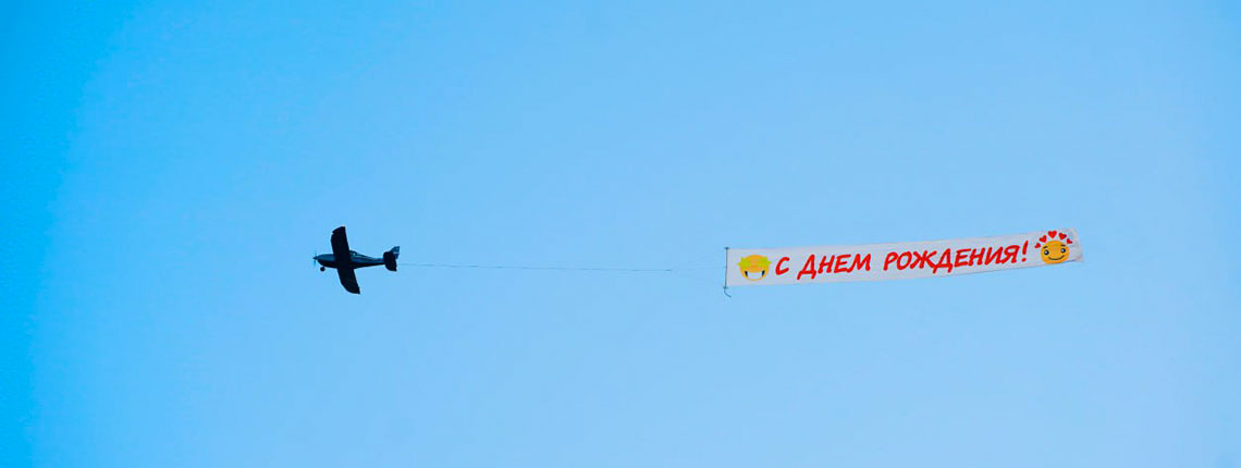 Авиареклама (воздушная реклама) — эффектный способ заявить о себе: ваше послание, растянутое в небе, точно привлечёт внимание. Идеально для поздравлений, предложений, промо-акций и масштабных событий.